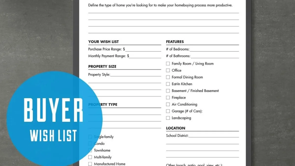 As a Realtor, this form will help your buyers clearly identify the type of house they are looking for.